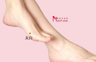 太白穴主要用于脾胃病的治疗,诸如胃痛、腹胀、便秘、呕吐等症;又可治疗关节痛、脚气病等。